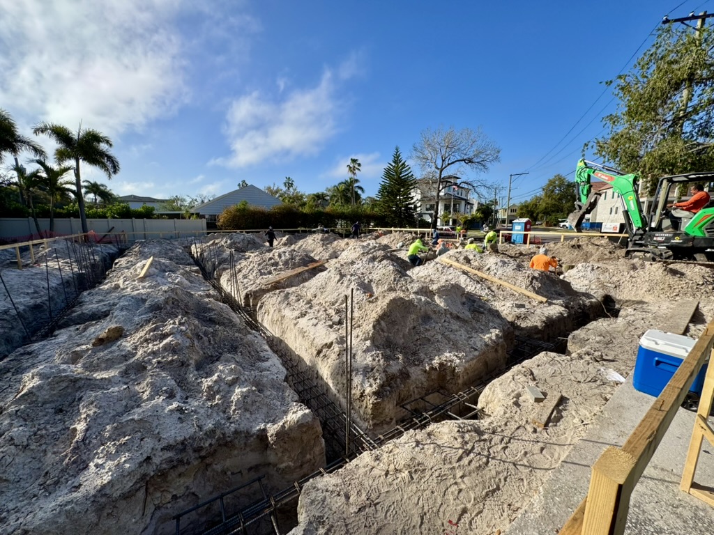 Next up is pouring the concrete for the footers and continuing to move upward from the foundation.